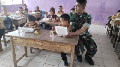 Babinsa Kodim 1420/Sidrap Dampingi Pemberian Makanan Bergizi Gratis dari Pemerintah Pusat
