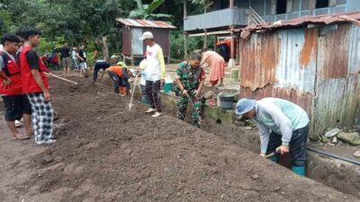 TNI, Warga, dan Mahasiswa KKN Unhas Bersinergi Bersihkan Saluran Air di Desa Lainungan