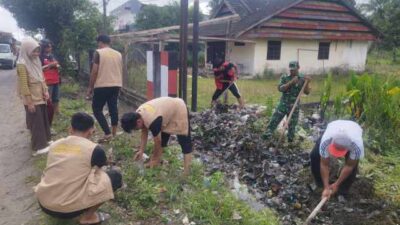 Personel Koramil 05/Dua Pitue Bersihkan Sampah dan Saluran Air di Monumen Andi Takko