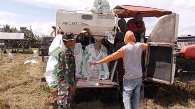 Dukung Ketahanan Pangan, Babinsa Koramil 1420-03/Maritengngae Dampingi Petani Panen Padi di Kelurahan Majjeling