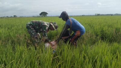 Babinsa Koramil 1420-03/Maritengngae Dampingi Petani Sidenreng Lakukan Pemupukan Padi