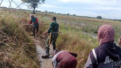 Dukung Ketahanan Pangan, Babinsa Koramil 1420-02/Tellu Limpoe Bersama Petani Bersihkan Irigasi di Baula