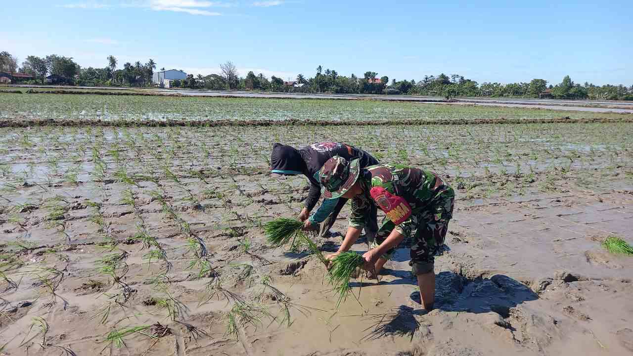 Pendampingan dilakukan pada lahan seluas 1,5 hektar milik Bapak Umar, dengan menggunakan sistem pindah tanam dan varietas padi Impari 32. Kegiatan ini merupakan bagian dari upaya TNI melalui aparat teritorial untuk mendukung ketahanan pangan nasional.