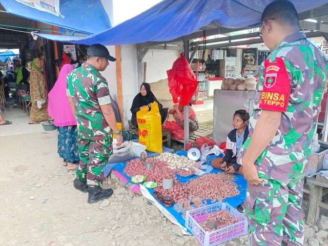 Dengan semangat pengabdian, Pelda Jafar menyusuri kios demi kios, berdialog hangat dengan para pedagang dan warga pembeli. Pemantauan ini merupakan bagian dari peran aktif TNI dalam mendukung ketahanan pangan dan memperkuat kepercayaan masyarakat terhadap stabilitas ekonomi di daerah.