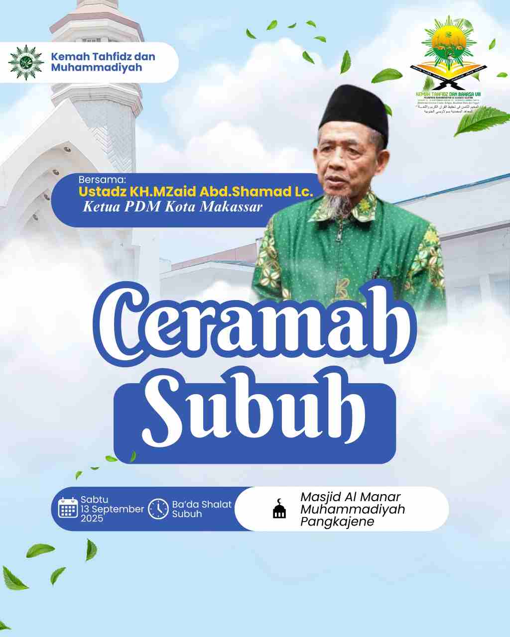 Di Masjid Al-Manar Muhammadiyah, tausiyah dibawakan oleh KH. M. Zain Abd Shamad, Lc, Ketua PD Muhammadiyah Kota Makassar.