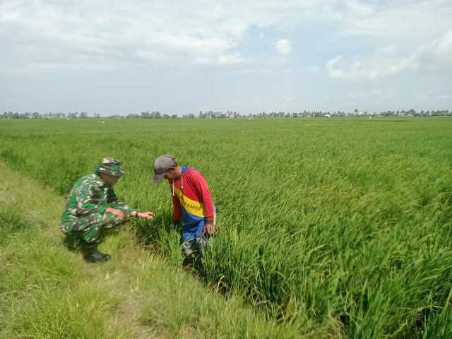 Kegiatan pemantauan rutin ini bertujuan untuk memastikan tanaman padi tumbuh dengan optimal. Selain melihat perkembangan fisik tanaman, Serka Darwis Vera juga berdialog dengan para petani guna mengantisipasi secara dini potensi serangan hama serta memastikan kelancaran sistem irigasi di wilayah tersebut.