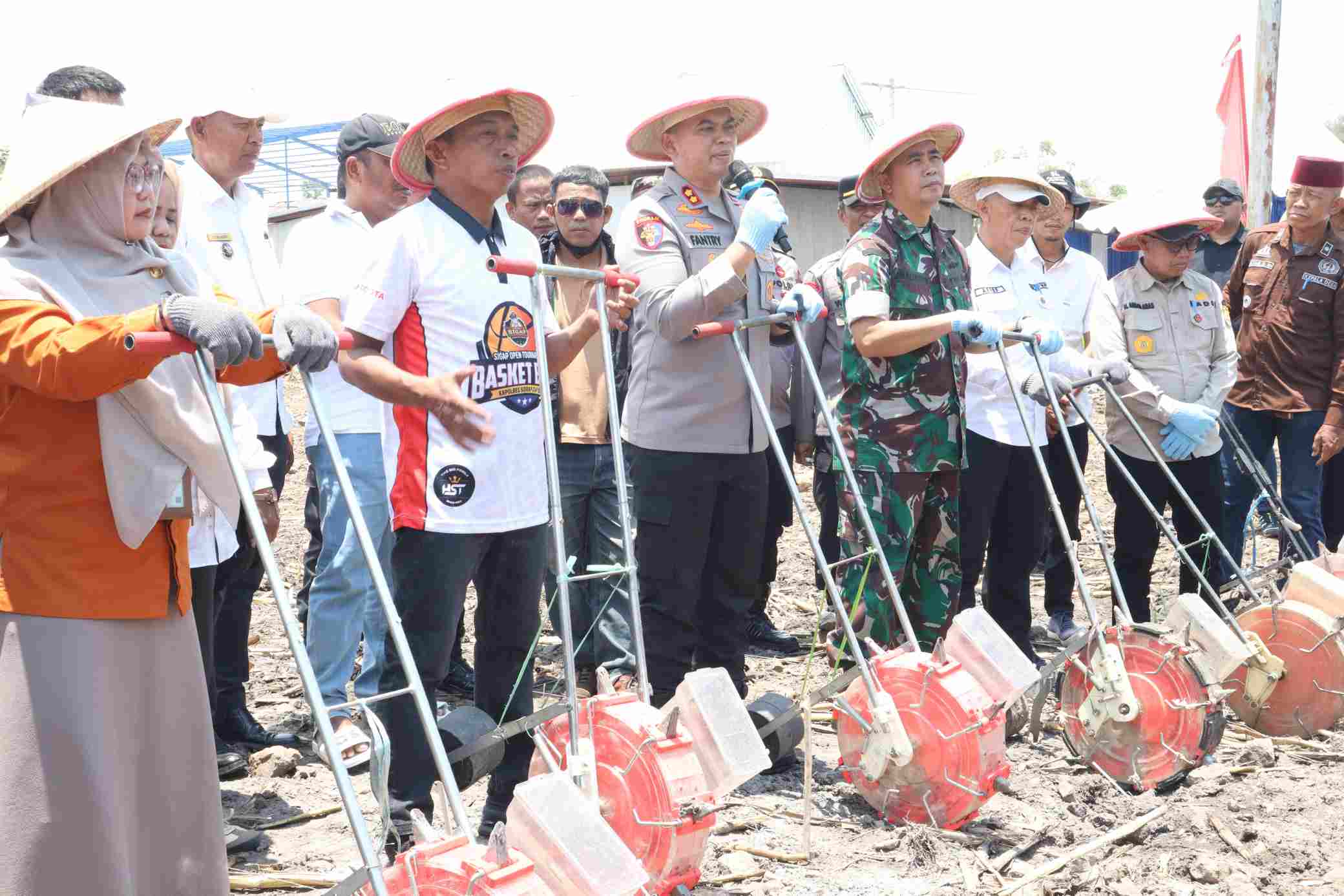 Sidrap, Diskresi.com – Sebagai wujud dukungan nyata terhadap program pemerintah dalam mewujudkan Swasembada Pangan Tahun 2025, Polres Sidrap bersama unsur Forkopimda melaksanakan penanaman jagung serentak kuartal IV di lahan produktif Desa Corawali Kecamatan Panca Lautang Kabupaten Sidrap, Rabu (8/10/25) siang