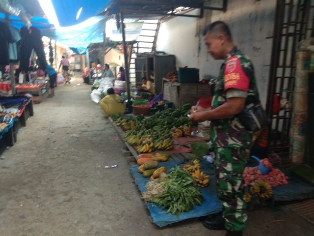Dalam kesempatan tersebut, Babinsa juga berdialog langsung dengan para pedagang dan pembeli untuk menyerap informasi terkait perkembangan harga dan ketersediaan barang.