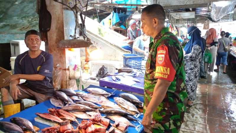 Selain mengecek harga, Serma Ramli juga memanfaatkan momentum tersebut untuk berinteraksi dengan pedagang dan pembeli guna memberikan imbauan mengenai keamanan dan ketertiban di lingkungan pasar.