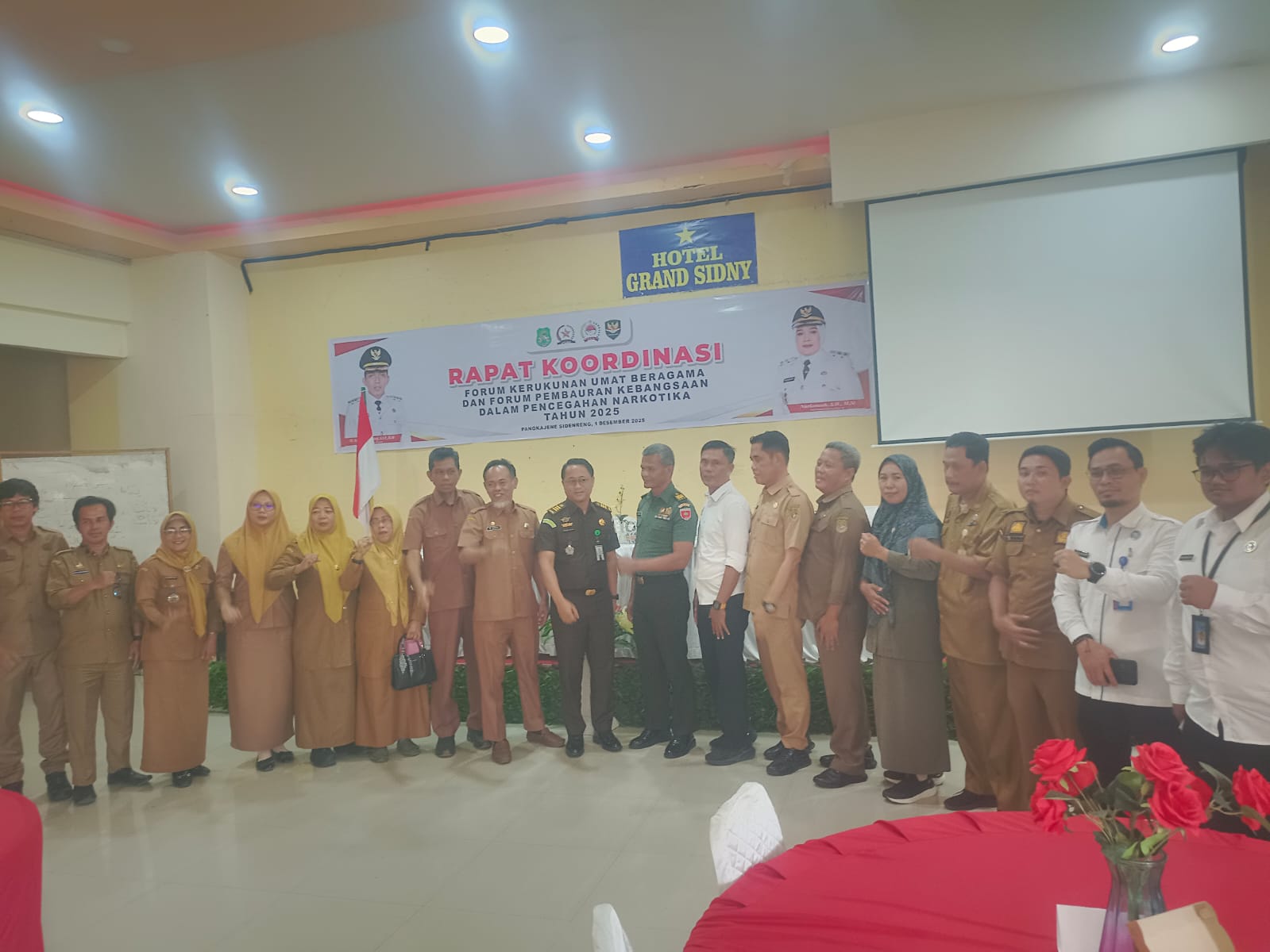 Sidrap, Diskresi.com – Kepala Bidang Linmas Satuan Polisi Pamong Praja Kabupaten Sidenreng Rappang, Hj. Sumiati, menghadiri Rapat Koordinasi Forum Kerukunan Umat Beragama (FKUB) dan Forum Pembauran Kebangsaan (FPK) yang digelar oleh Badan Kesatuan Bangsa dan Politik (Kesbangpol). Kegiatan ini berlangsung di Ballroom Hotel Grand Sidny, Senin (1/12/2025).