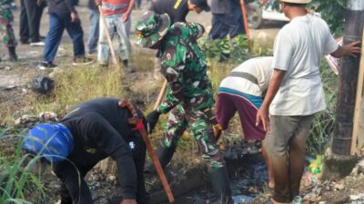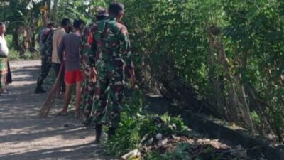 Koramil 01/Panca Lautang dan Warga Laksanakan Kerja Bakti Pembersihan Saluran Air di Desa Wanio Wattang