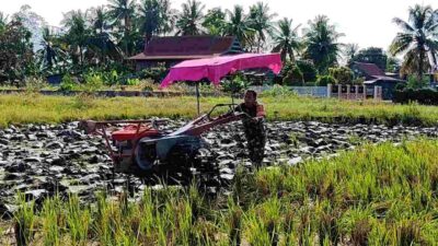 Percepat Proses Tanam, Babinsa Desa Sereang Bantu Petani Bajak Sawah