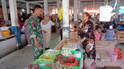 Komsos Dengan Pedagang Pasar, Babinsa Koramil 1420-07/Baranti Pantau Harga Sembako