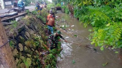 Antisipasi banjir Dan Wabah Penyakit, Babinsa Koramil 1420-06/Panca Rijang Pimpin Kerja Bakti Pembersihan Saluran Air
