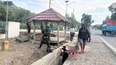 Babinsa dan UPPKB Datae Bersihkan Saluran Air di Lawawoi, Antisipasi Banjir Jelang Musim Hujan