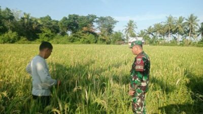 Babinsa Cek Padi Siap Panen Milik Petani Warga Desa Binaan