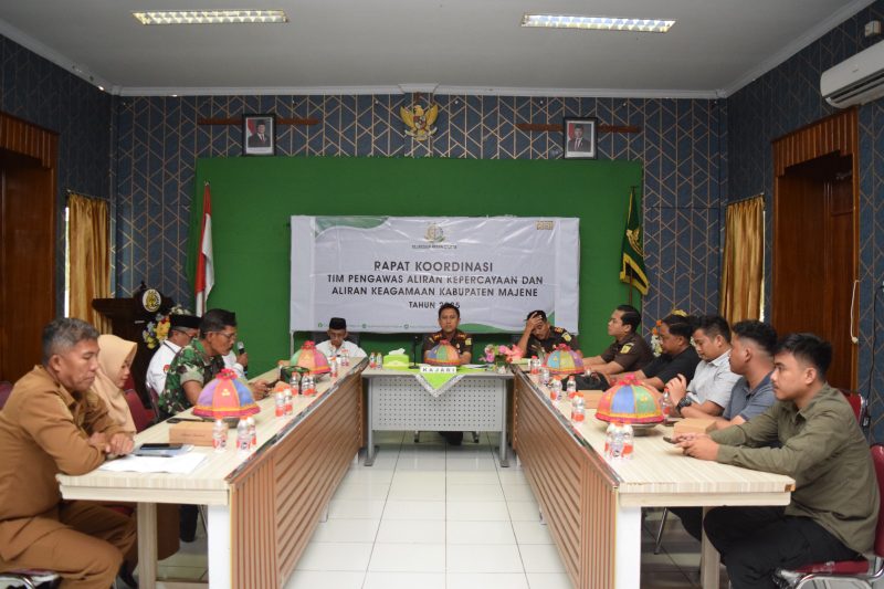 Majene, Diskresi.com – Kejaksaan Negeri (Kejari) Majene melalui Tim Pengawasan Aliran Kepercayaan dan Keagamaan dalam Masyarakat (PAKEM) menggelar rapat koordinasi tahun 2025 di Aula Kejari Majene, Selasa (14/10/2025) pagi.