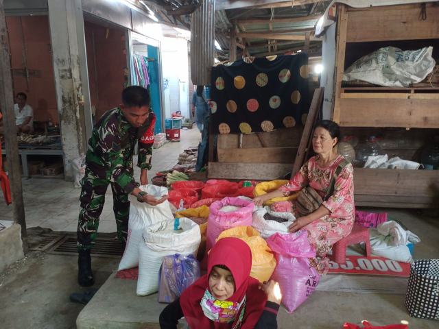 Serma Afzalul Rahman turun langsung berinteraksi dengan para pedagang dan pembeli untuk mendapatkan informasi valid mengenai pergerakan harga komoditas utama, seperti beras, minyak goreng, gula, telur, dan cabai.