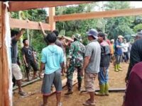 Sinergi Tanpa Batas, Personel Koramil 1420-05/Dua Pitue Bahu-Membahu Bangun Rumah Warga di Desa Compong