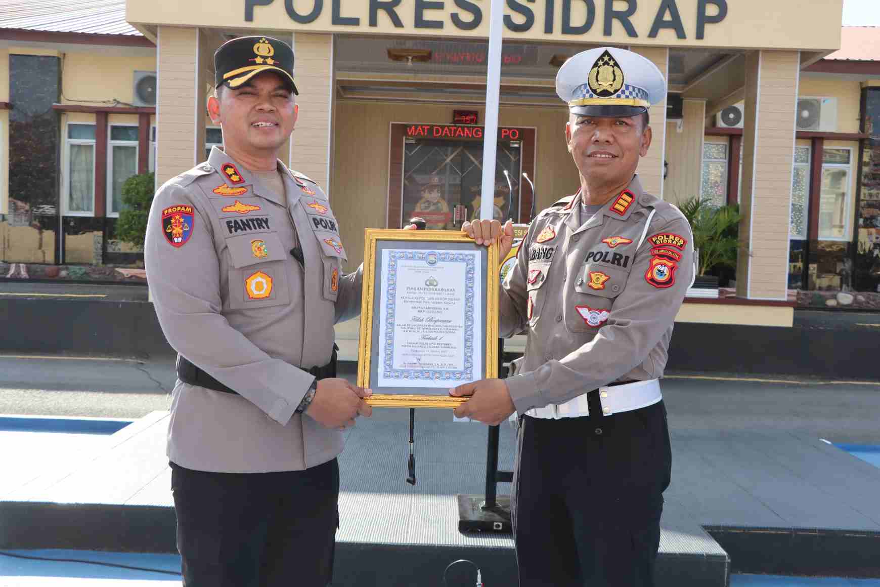 Sidrap, Diskresi.com – Kapolres Sidrap Akbp Fantry Taherong menyerahkan reward (penghargaan) berupa piagam kepada personelnya yang berprestasi di bidang Lalulintas, penyerahan penghargaan tersebut digelar di lapangan apel presisi Polres Sidrap, Kamis (25/9/25) pagi