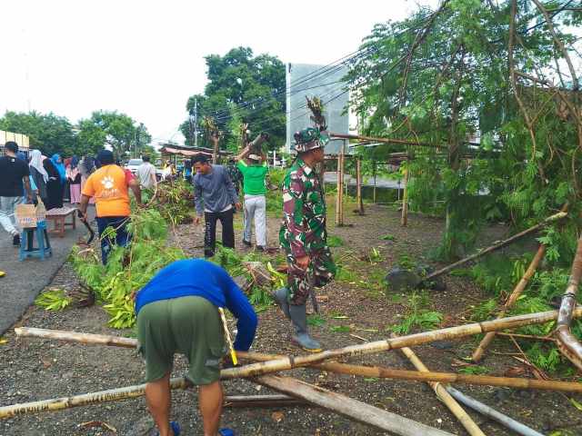 Kegiatan ini difokuskan pada pembersihan tumpukan sampah yang mulai menumpuk di area pasar guna menciptakan lingkungan yang sehat dan nyaman bagi pedagang maupun pengunjung.